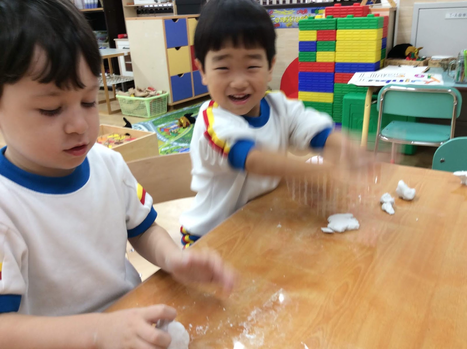We also have been engaged in lots of activities that helps with our fine motor skills and hand and eye coordination skills - threading beads, cutting with scissors, transferring marbles with tweezers from one container to the other.