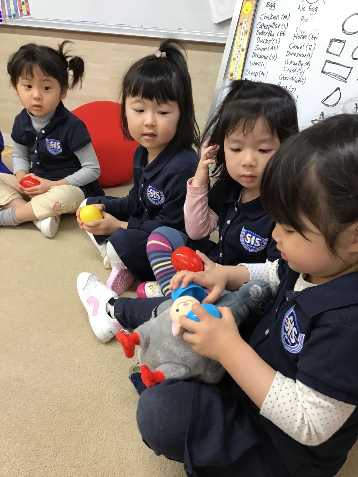 So we watched some video clips of the different animals hatching from an egg,