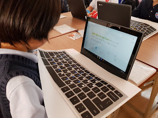 At the very beginning, students found this activity pretty hard. They kept looking at the keyboard on the computer.